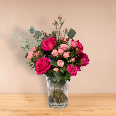 Liefdevol kerstboeket roze